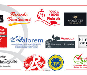 > Vendée Qualité : organisme de Défense et de Gestion des produits Vendéens avec ses 11 sections et 14 produits : Porc fermier de Vendée, Volailles de Challans et de Vendée, Bœuf fermier de Vendée, Agneau Label Rouge, Brioche vendéenne (Brioche et Gâche), Mogette de Vendée, Jambon de Vendée, Sardines de Saint-Gilles, produits de Noirmoutier (Pomme de terre de Noirmoutier, Soupe aux araignées de mer), Melon LR, Fleur de sel.
